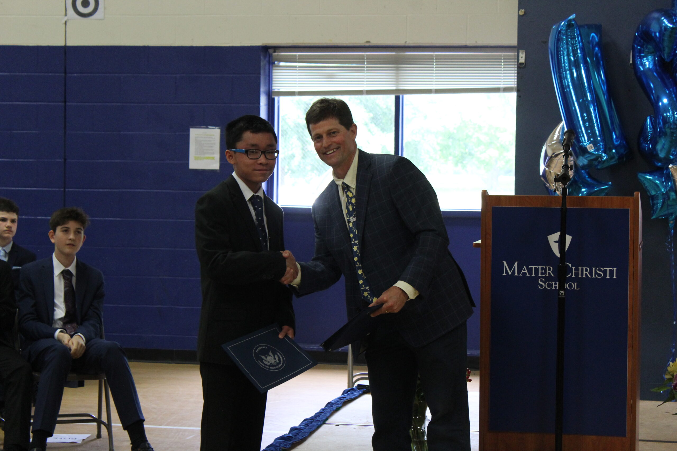 The President’s Award for Educational Excellence recognizes academic excellence in the classroom. To be eligible, students must have maintained a Grade Point Average of 95 or higher in all academic classes from Grade 6-Trimester 2 of Grade 8, and, on standardized tests, scored in the 85th percentile or higher in reading and/or math in Grade 7.